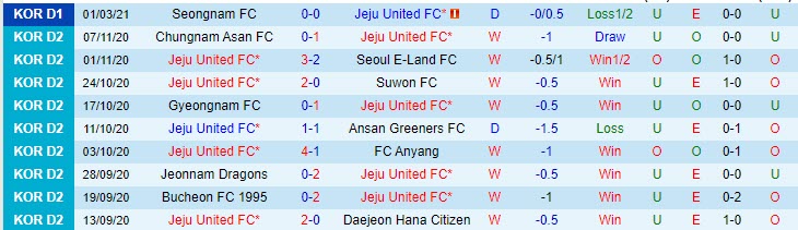 + Thống kê 10 trận gần nhất của Jeju United