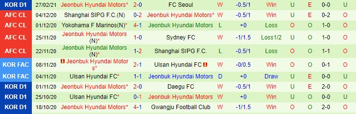 + Thống kê 10 trận gần nhất của Jeonbuk Hyundai