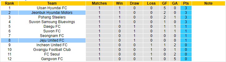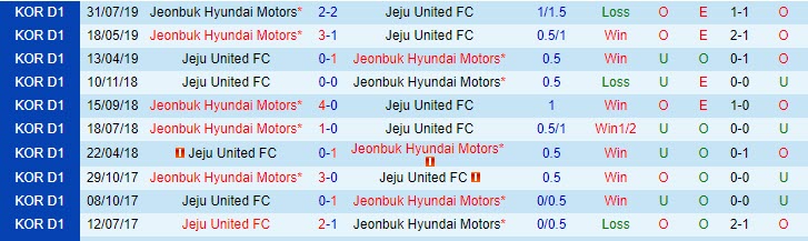 Phong độ và thống kê đối đầu Jeju United - Jeonbuk Hyundai gần đây: