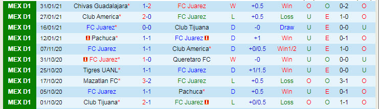 Juarez có khởi đầu lượt về giải VĐQG Mexico 2020/21 không mấy suôn sẻ khi có được 2 trận hòa và thua 1 trận. Phải đợi tới vòng 4 diễn ra cuối tuần trước, Juarez mới có được niềm vui chiến thắng khi đánh bại Guadalajara với tỷ số 2-1.