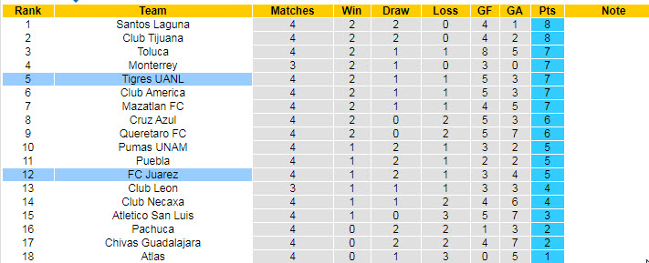 Niềm tin của Juarez càng gia tăng bởi Tigres UANL đang có dấu hiệu mất tập trung khi thua 1, hòa 1 và thắng đúng 1 trận ở 3 lượt trận vừa rồi tại giải VĐQG Mexico. Tính cả lượt đi, họ chỉ thắng 4 trong số 10 trận đấu mới đây.