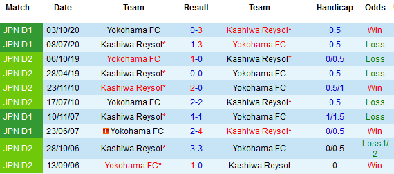 + Lịch sử đối đầu Kashiwa Reysol vs Yokohama FC