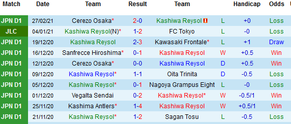 + Thống kê 10 trận gần nhất của Kashiwa Reysol
