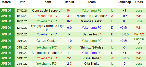 + Thống kê 10 trận gần nhất của Yokohama FC