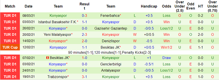 Konyaspor không thua cả 6 lần chạm trán gần nhất thuộc khuôn khổ giải VĐQG Thổ Nhĩ Kỳ trước Kasimpasa. Nhưng mọi thứ hứa hẹn có sự thay đổi vào thứ Hai (15/3). Konyaspor chỉ sở hữu tỷ lệ thắng kèo ở mức 33.33%, thấp thứ hai tại Super Lig mùa này.