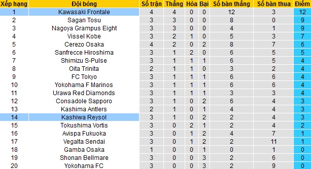 Vào lúc này bất kỳ đội bóng nào tại J-League cũng đều rất khó có điểm trước nhà ĐKVĐ, huống hồ Kashiwa Reysol lại đang thi đấu sa sút trong mùa giải mới. Ngoài ra Kawasaki Frontale vẫn đang toàn thắng trong cả 4 lần gặp nhau trước đó giữa hai đội, thế nên chọn cửa trên vẫn là an toàn cho dù kèo chấp ở mức cao.