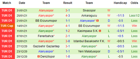 + Thống kê 10 trận gần nhất của Alanyaspor