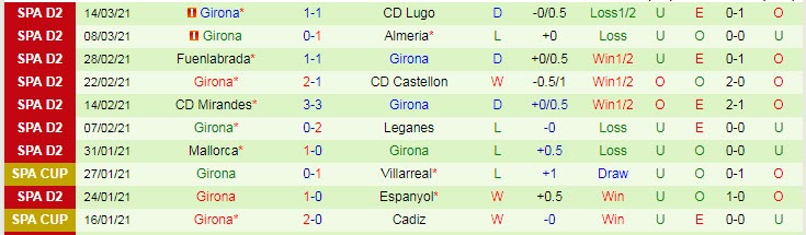 Bên kia chiến tuyến, Girona đang chìm đắm trong cơn khủng hoảng phong độ. Theo đó, đội khách Girona chỉ thắng đúng 1 trận, còn lại là 3 trận hòa và thua 3 trận ở 7 vòng đấu mới đây. Cần nhắc thêm, Girona từng thua 4 và chỉ hòa 1 ở 5 trận gần nhất làm khách trên sân của Las Palmas tại giải hạng 2 Tây Ban Nha.
