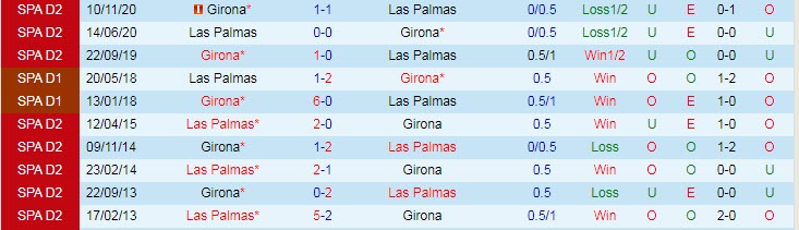 Phong độ và thống kê đối đầu Las Palmas - Girona gần đây: