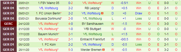 + Thống kê 10 trận gần nhất của Wolfsburg
