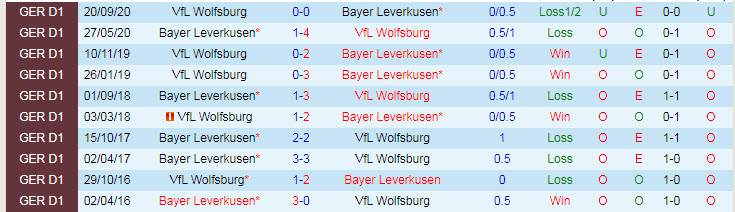 Phong độ và thống kê đối đầu Leverkusen - Wolfsburg gần đây:
