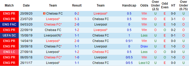 Tỷ lệ kèo Liverpool vs Chelsea