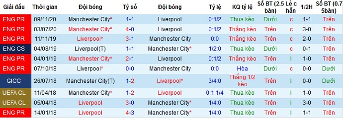 Tỷ lệ kèo Liverpool vs Man City