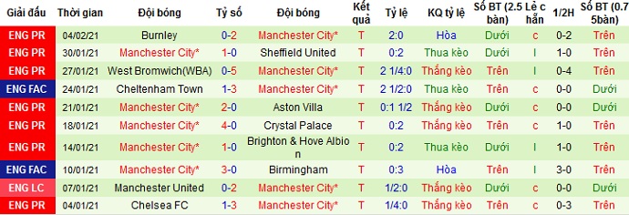 + Thống kê 10 trận gần nhất của Man City