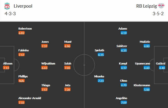 Đội hình dự kiến Liverpool vs RB Leipzig