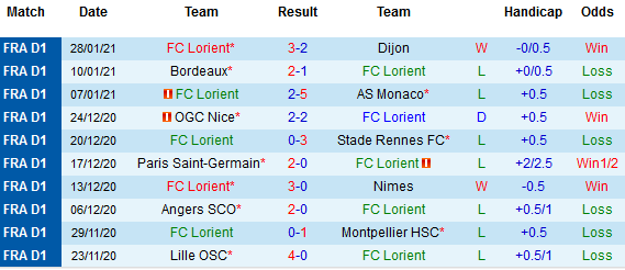 Thời điểm hiện tại cũng là hình ảnh vươn lên đầy mạnh mẽ của PSG với liên tiếp 7 vòng đều bất bại với 5 chiến thắng để chiếm ngôi nhất bảng. Trong khi đó, Lorient lại chỉ biết đến hòa và thua ở 5 trong 6 trận gần đây.