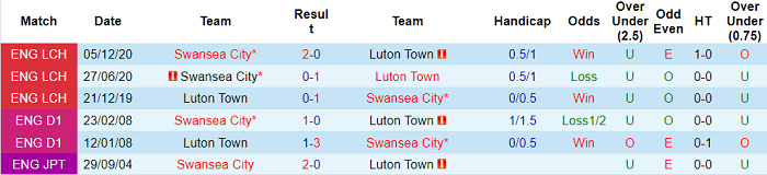 Phong độ và thống kê đối đầu Luton Town - Swansea