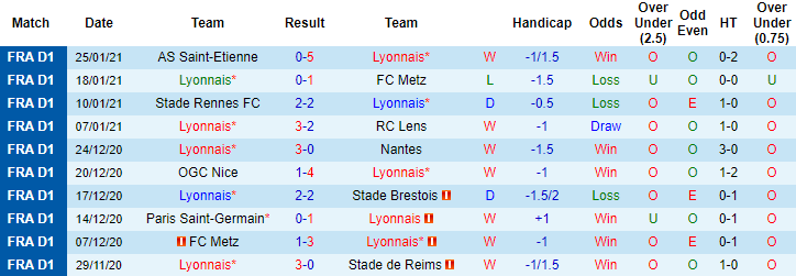 + Thống kê 10 trận gần nhất của Lyon