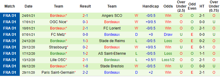 + Thống kê 10 trận gần nhất của Bordeaux