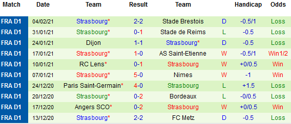 + Thống kê 10 trận gần nhất của Strasbourg