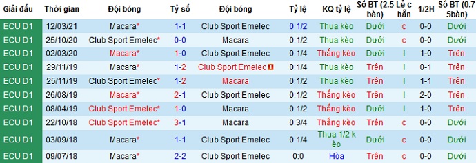 + Lịch sử đối đầu Macará vs Emelec