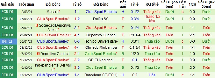 + Thống kê 10 trận gần nhất của Emelec