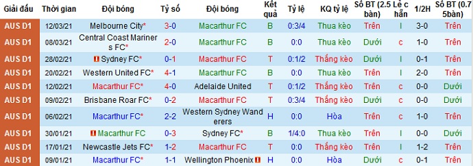 Ở trận đấu lượt đi hồi cuối tháng 2, Western United trên sân nhà lần đầu tiên đã vượt qua đối thủ với tỷ số 4-1. Hiện tại Macarthur FC đang có phần sa sút về phong độ khi để thua tới 3 trong 4 trận gần nhất, thế nên chọn cửa dưới vẫn có phần an toàn hơn.