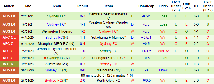 + Thống kê 10 trận gần nhất của Sydney