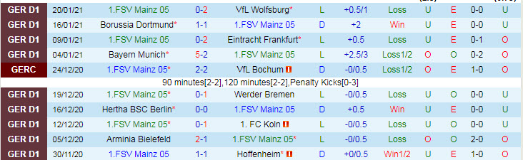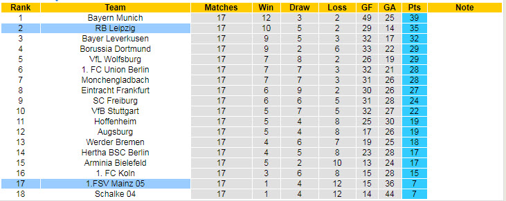Phong độ và thống kê đối đầu Mainz - RB Leipzig gần đây: