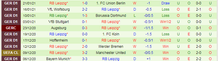 + Thống kê 10 trận gần nhất của RB Leipzig