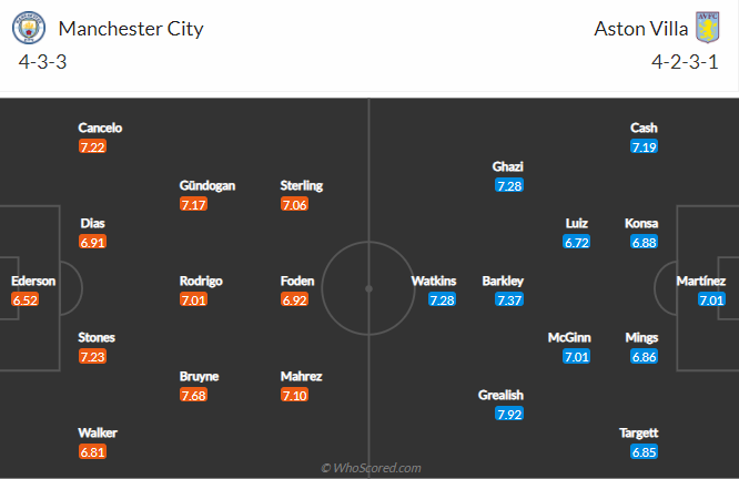 Đội hình dự kiến Man City vs Aston Villa