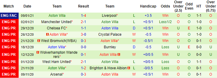 Aston Villa đang là một trong những đội bóng thi đấu ấn tượng nhất trên sân khách ở mùa giải này. 10 trận xa nhà từ đầu mùa giải 2020/21, Aston Villa bất bại 8 lần với 7 chiến thắng và 1 trận hòa. Tính theo kèo châu Á, 12 trận sân khách trước đó tính trên mọi đấu trường, Aston Villa thắng 10 trận.
