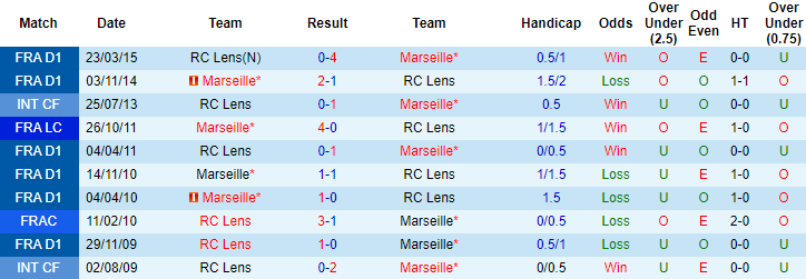 Lens được coi là đối thủ yêu thích của Marseille. Trong vòng 5 trận đối đầu Lens gần đây, Marseille toàn thắng, ghi 11 bàn và chỉ 1 lần để thủng lưới. Lần tái đấu sắp tới được chơi trên sân nhà nên về lý thuyết, Marseille càng hứa hẹn hơn vào khả năng giành chiến thắng.