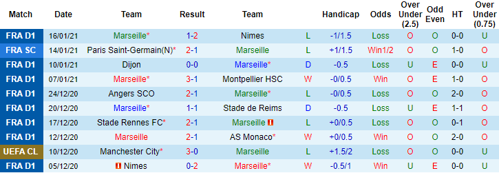 + Thống kê 10 trận gần nhất của Marseille