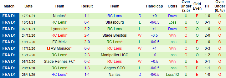 + Thống kê 10 trận gần nhất của Lens