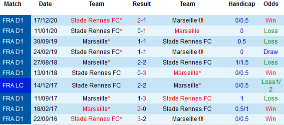 Là tên tuổi lẫy lừng của bóng đá Pháp nhưng Marseille lại không có thành tích đối đầu ấn tượng khi tiếp đón Rennes với 3 trận gần nhất chỉ biết đến hòa và thua. Đây cũng là thời điểm mà đại diện đất Cảng cũng gặp nhiều vấn đề để hy vọng vào chiến thắng.