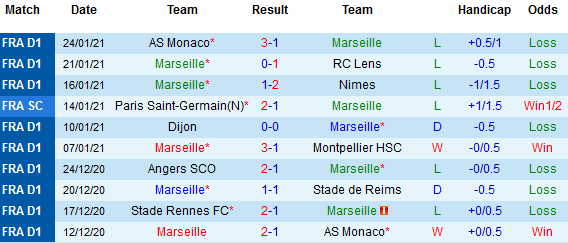 Liên tiếp 5 trận gần nhất ở mọi giải đấu mà Marseille chỉ biết đến hòa và thua, trong đó chỉ có 1 điểm từ trận hòa đối thủ tưởng chừng dễ chịu như Dijon. Cả 2 trận sân nhà gần đây cũng chứng kiến đoàn quân dưới quyền HLV Villas-Boas bị khuất phục.