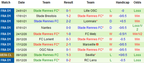 + Thống kê 10 trận gần nhất của Rennes