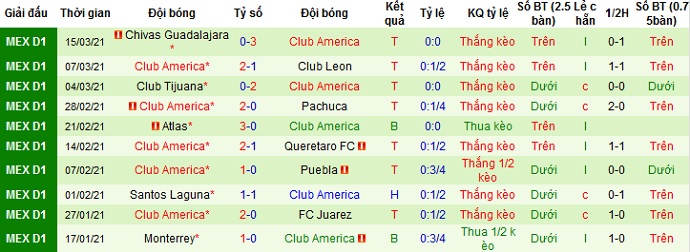 + Soi tỷ lệ kèo châu Á: Với vị thế cao hơn hẳn đối thủ cũng như phong độ đang lên nên cho dù phải thi đấu trên sân khách Club América vẫn được đánh giá là đội cửa trên với kèo chấp đang là -0,5.