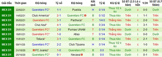 Trong 5 trận gần nhất Querétaro thắng 2 trận, hòa 1 và để thua 2. Tuy nhiên thành tích sân khách của đội bóng lại rất tệ khi chưa thắng được dù chỉ 1 trận trong tất cả các lần du đấu của mùa này, trong đó đang để thua ở cả 5 lần du đấu gần nhất.