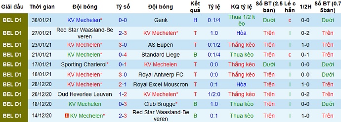 Phong độ gần đây của Mechelen là khá tốt khi ở 5 trận gần nhất đội bóng có được 3 trận thắng, 1 trận hòa và 1 trận thua. Trên sân nhà thành tích của Mechelen cũng hoàn toàn tương tự khi chỉ để thua 1 trận, thắng 3 và hòa 1 ở 5 trận gần nhất tại đây.