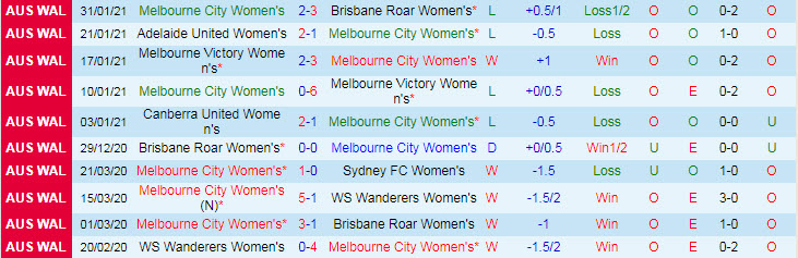 + Thống kê 10 trận gần nhất của Melbourne City (W)