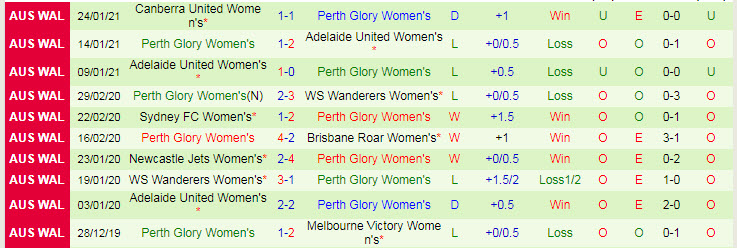 + Thống kê 10 trận gần nhất của Perth Glory (W)