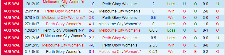 + Lịch sử đối đầu Melbourne City (W) vs Perth Glory (W)