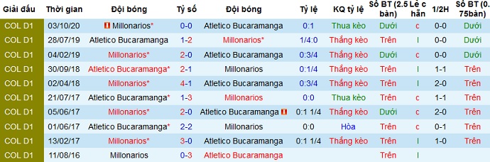Tỷ lệ kèo Millonarios vs Bucaramanga