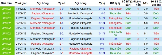 + Lịch sử đối đầu Montedio Yamagata vs Fagiano Okayama