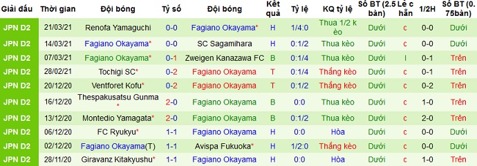 Fagiano Okayama cũng có được 2 trận thắng, 2 trận hòa và 1 trận thua ở 5 trận gần đây. Thế nhưng ngay trên sân khách đội bóng lại đang bất bại trong cả 3 lần du đấu gần nhất với 2 trận thắng và 1 trận hòa.