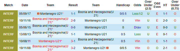 Phong độ và thống kê đối đầu Montenegro U21 vs Bosnia-Herzeg U21