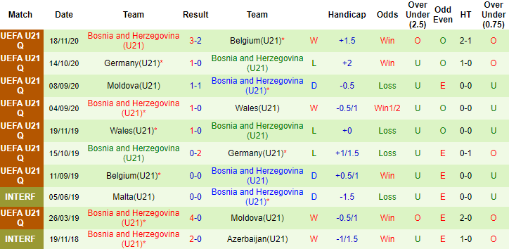 Trong khi đó Bosnia U21 đã cho thấy những bước tiến về mặt phong độ giai đoạn gần đây. 4 trận vừa qua đội bóng này bất bại 3 lần với 2 chiến thắng và 1 trận hòa, thắng 3 trận theo kèo châu Á. Trên sân khách 10 trận trước đó tính ở mọi đấu trường, Bosnia U21 bất bại 7 lần.