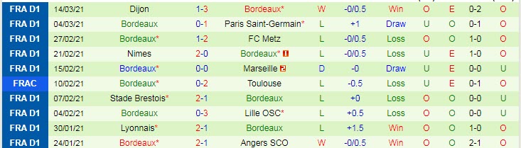 + Thống kê 10 trận gần nhất của Bordeaux